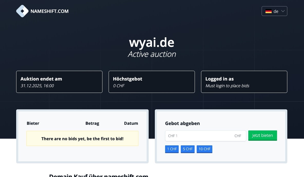 Starten Sie jetzt Ihre eigene Domain-Auktion auf Nameshift.com. Versteigern Sie Ihre Domains direkt über unseren Marktplatz und erzielen Sie Top-Preise. Jederzeit und in unbegrenzter Anzahl.