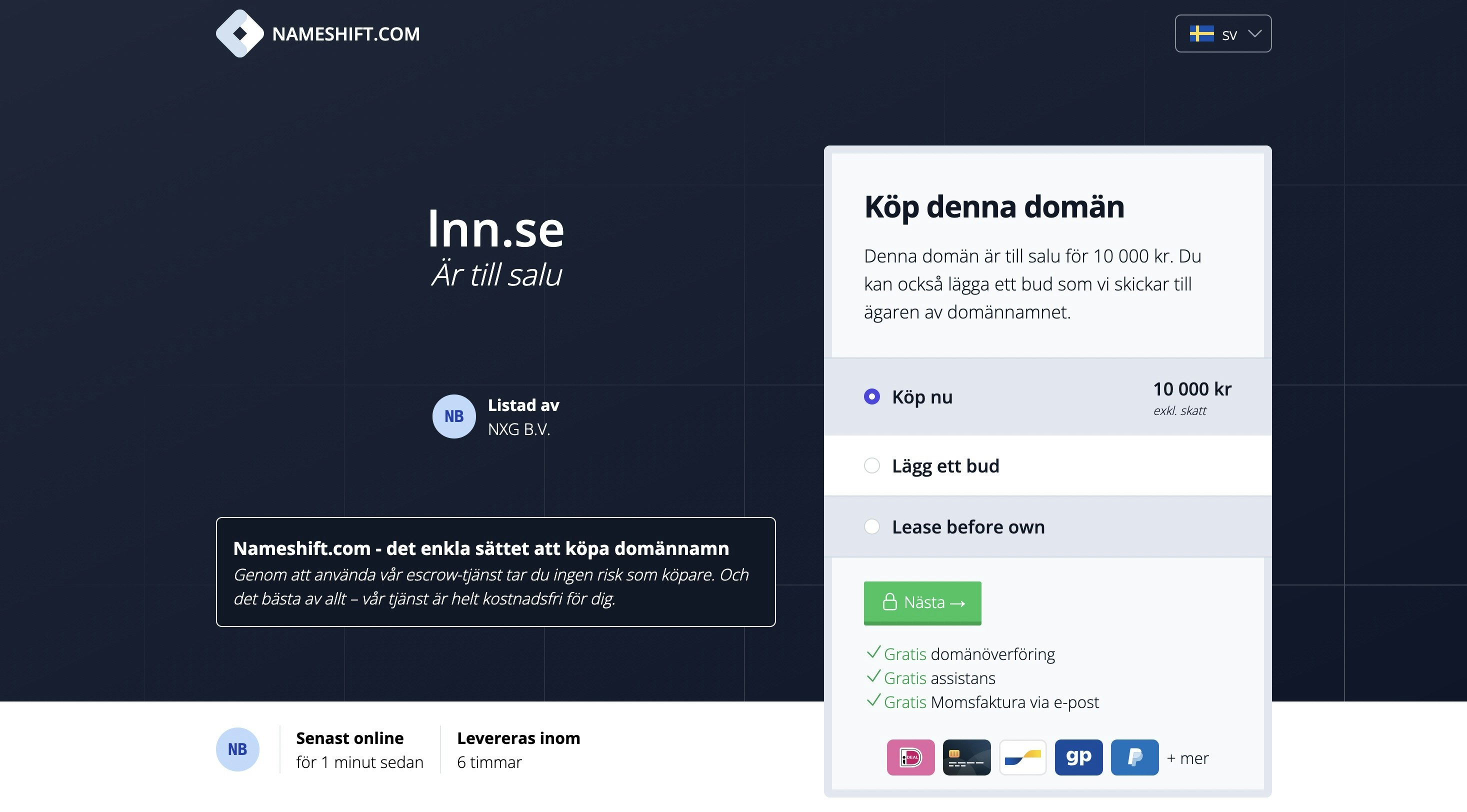 Sälj din domän i den valuta du föredrar: SEK, USD, GBP eller EUR.