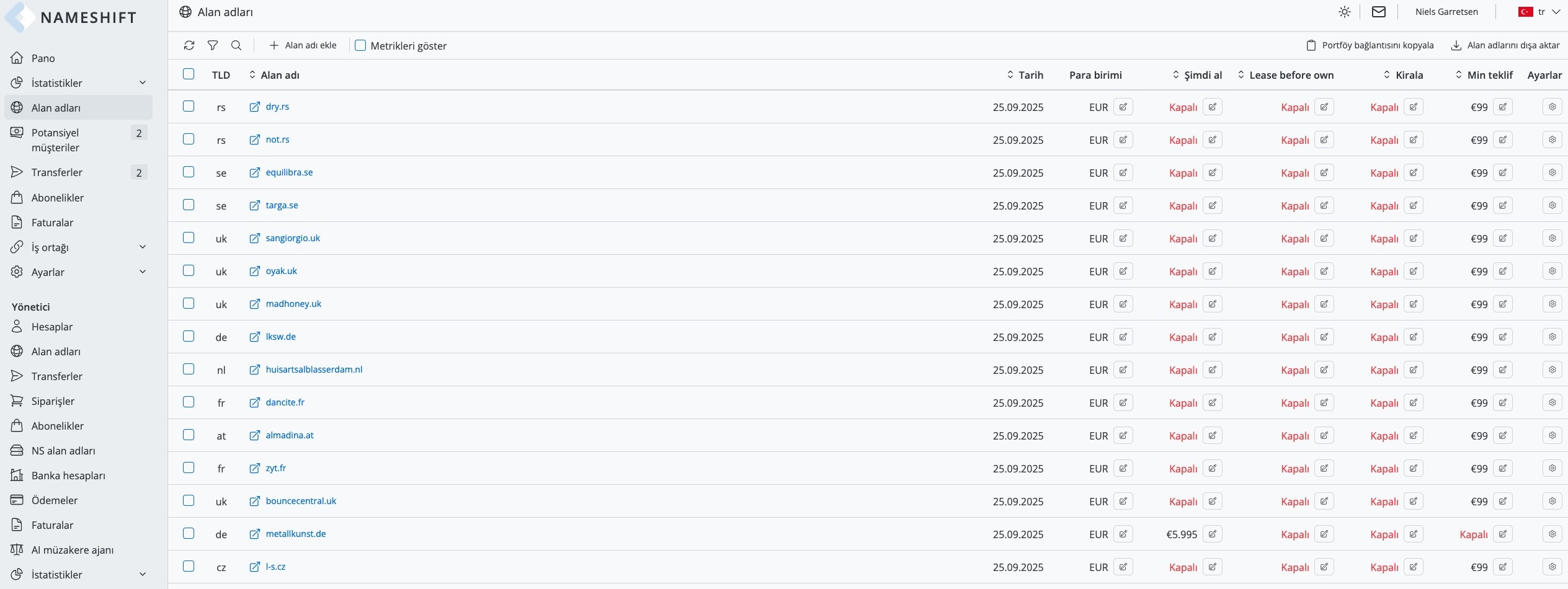 Platformumuz, ihtiyaçlarınızı göz önünde bulundurarak oluşturulmuştur. Alan adı ayarlarınızı tek tek veya toplu olarak kolayca güncelleyebilirsiniz. Alan adı ekleyin, içe aktarın ve alıcılarla pazarlık yapın. Hepsi aynı kontrol panelinden.